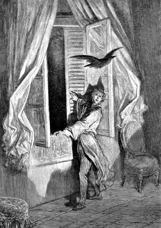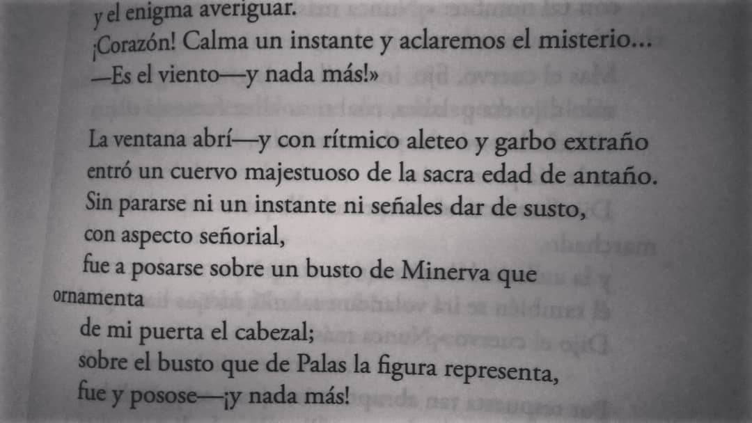 Relato / Poema : El Cuervo (1845) " La ventana abrí- y con rítmico aleteo y garbo extraño entró un cuervo majestuoso de la sacra edad de antaño".